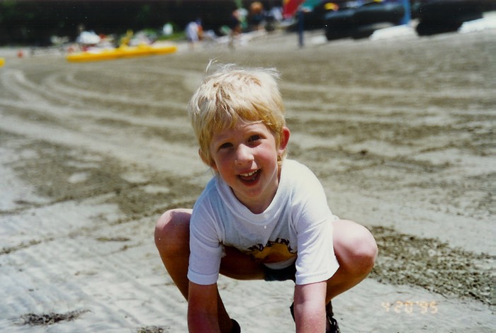 Daphne showing off artwork at beach 1994